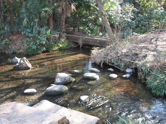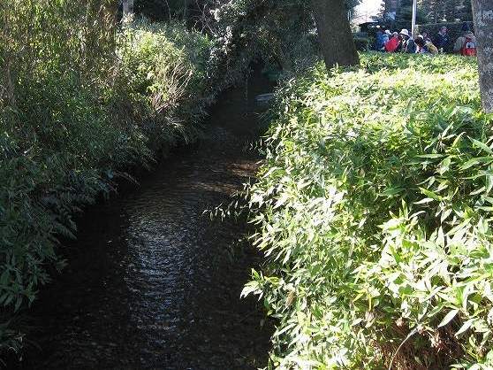 | 氷川神社裏に来ました神社裏の小川はとても綺麗に澄んでいますなんと!湧水なのです! | ![]() |