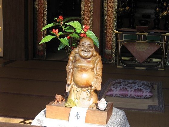 | 本堂入口に祀られている布袋尊優しい良いお顔です | ![]() |