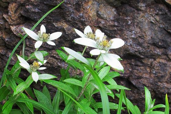 本命のハヤチネウスユキソウ 蛇紋岩に植生する早池峰山固有種 特別天然記念物に指定されている |